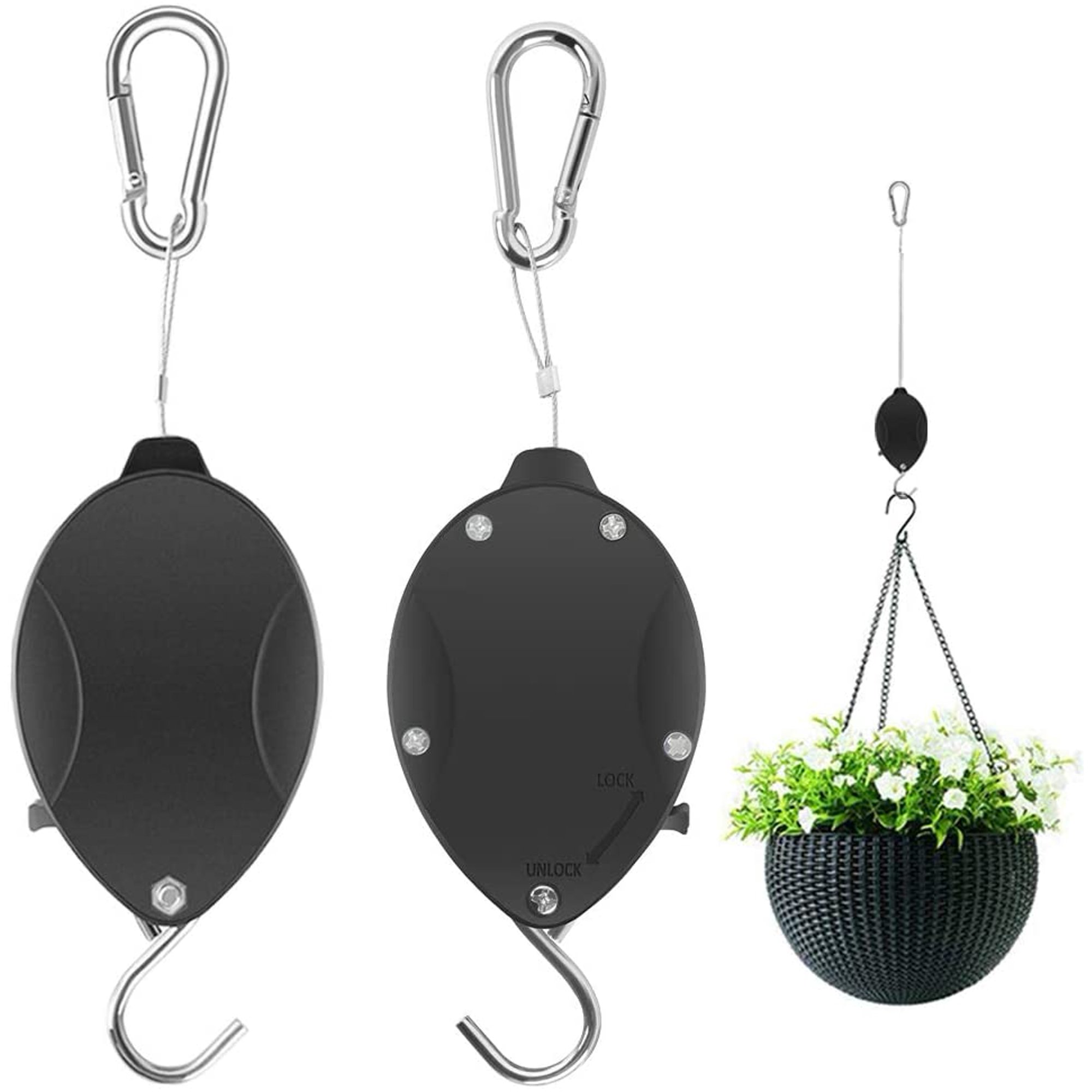 One Plant Pulley Retractable Heavy Duty Easy Reach Pulley Hanging Plant Flower Hanging Hook With Auto Lock Mechanism For Flower Pots And Birds High Up And Pull Down Hanging Feeder Set Of 2
