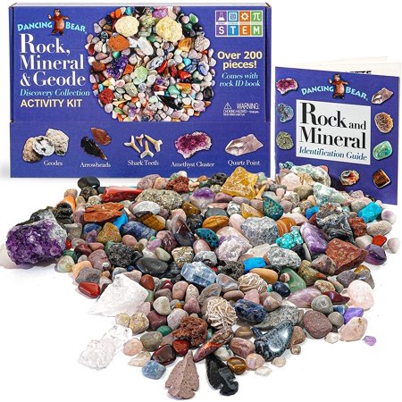 Iguohao Rock Mineral Collection Activity Kit 200 Pcs With Geodes Shark Teeth Fossils Arrowheads Crystals Gemstones For Kids Rock Book Treasure Hunt Id Sheet Stem Education Made In Usa Walmart Ca