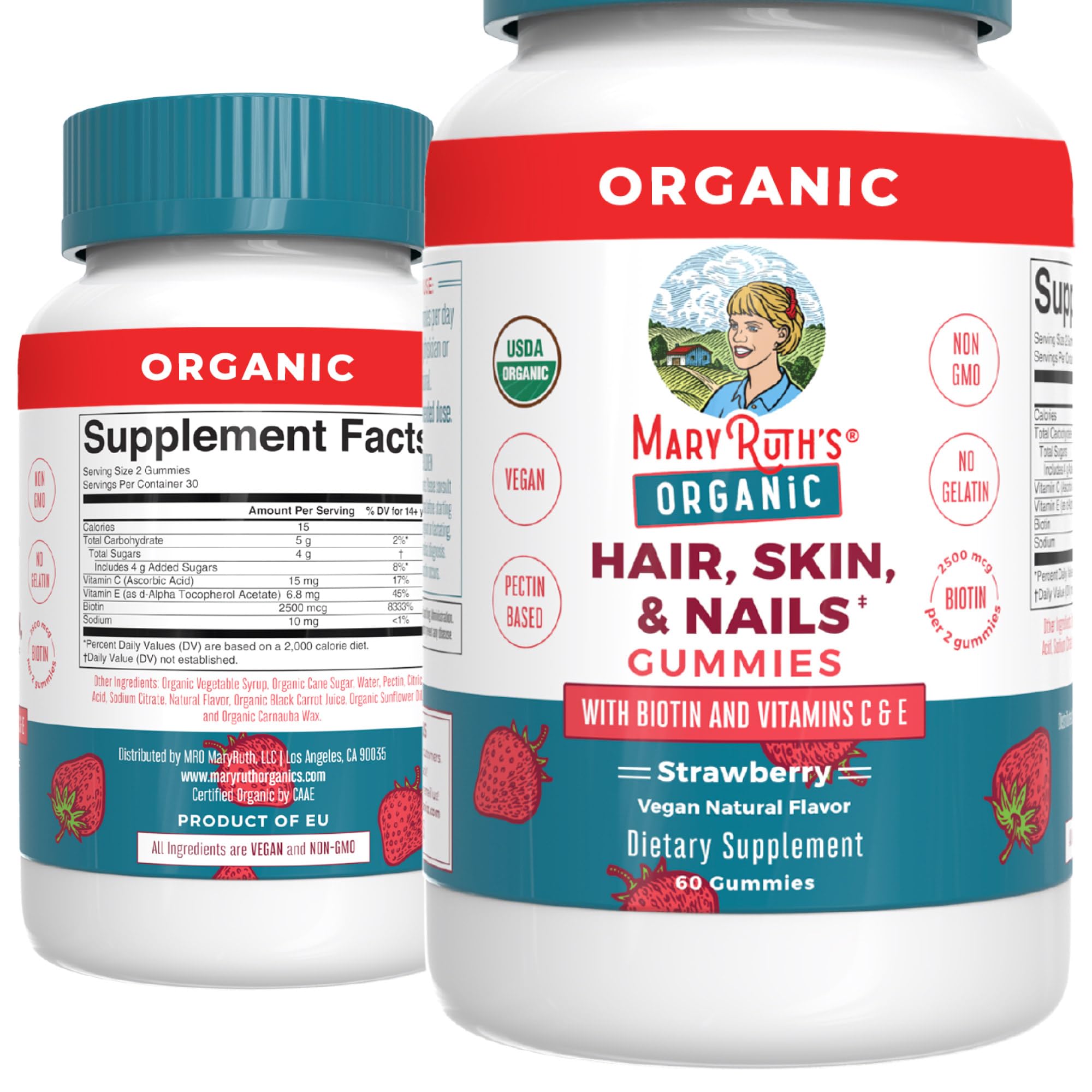 Maryruth Organics Nutritional Supplement Hair Skin And Nail Usda Organic Biotin Gummy With Vitamin C And E For Ages 14 60 Count Gummies